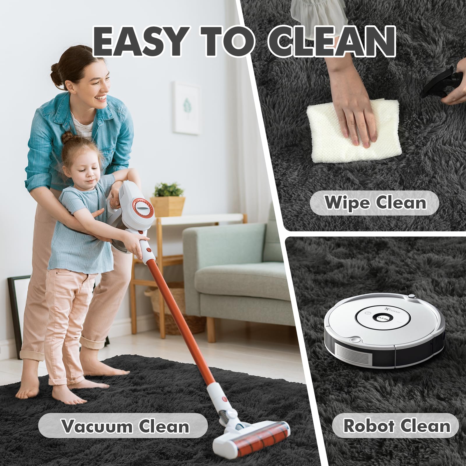 - 【Easy Care】 Both hand wash and machine wash are available, but for better long-term performance, we recommend using a handheld vacuum or wiping with a damp cloth for daily upkeep. The deep grey color resists visible stains, making it ideal for busy spaces.